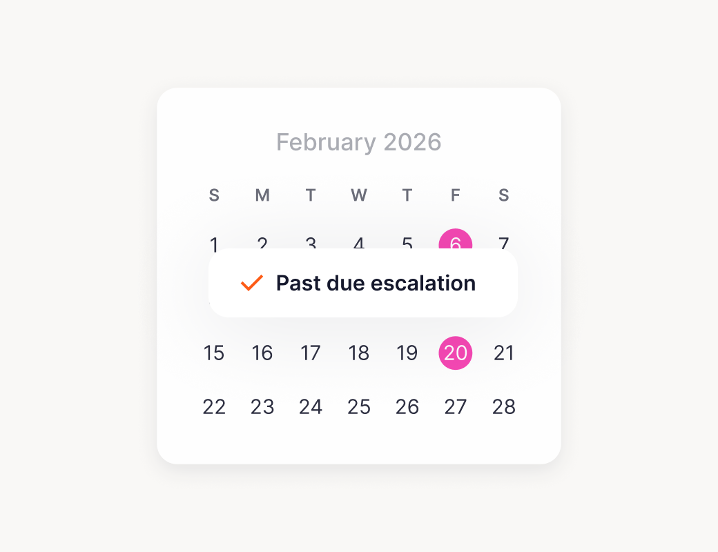 Dunning and escalation run on schedule so overdue balances get attention automatically. Revenue recovers without your team lifting a finger.